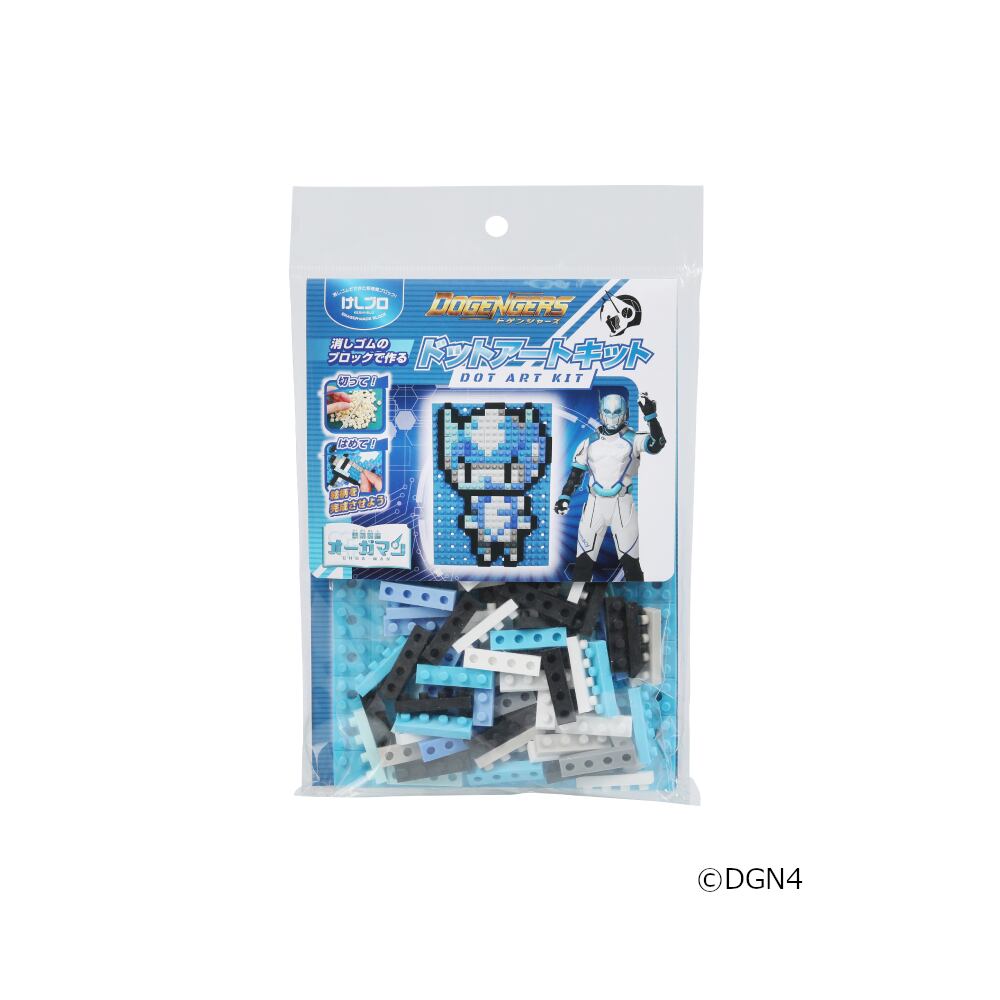 消しゴム素材のブロックパーツ「けしブロ」をベース板にはめていくことで、ドット絵を完成させる工作キットです。