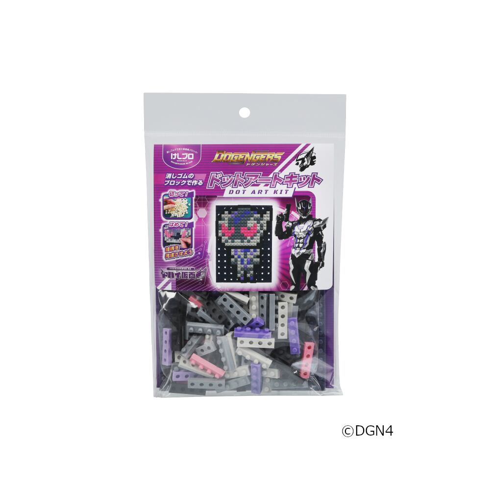 消しゴム素材のブロックパーツ「けしブロ」をベース板にはめていくことで、ドット絵を完成させる工作キットです。